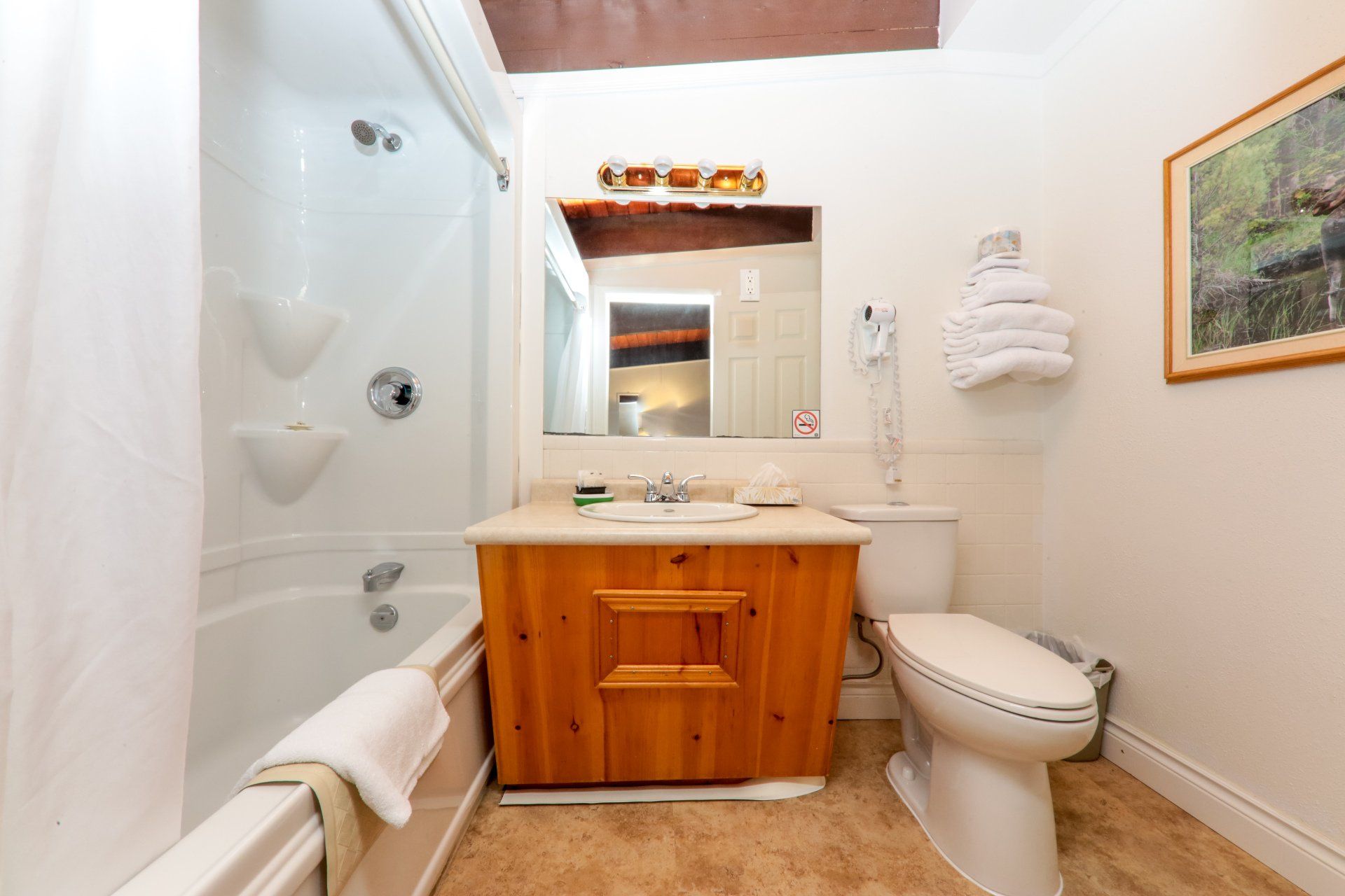 1 King bed. Lower level rooms open to the front of the property with patio space, and optional hot tubs outside some rooms. BBQs and horseshoe pits are right outside your door, and you have easy access to the lawn for kids & pets.
