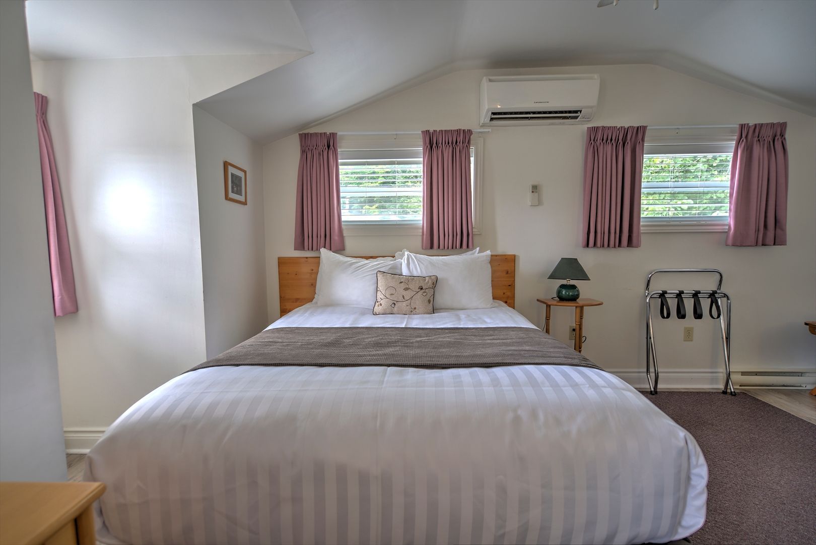 1 King Bed, Parking Outside Room. Upper level rooms have parking at the back and a balcony at the front, overlooking the lake.